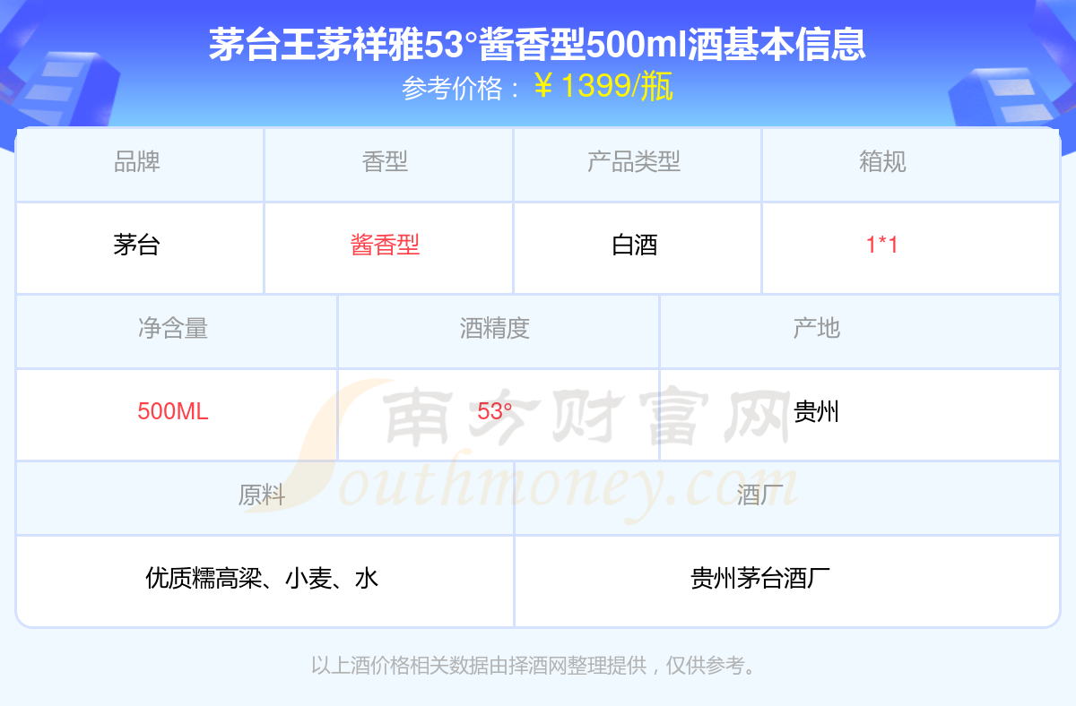 茅臺王茅祥雅53°醬香型500ml基本信息