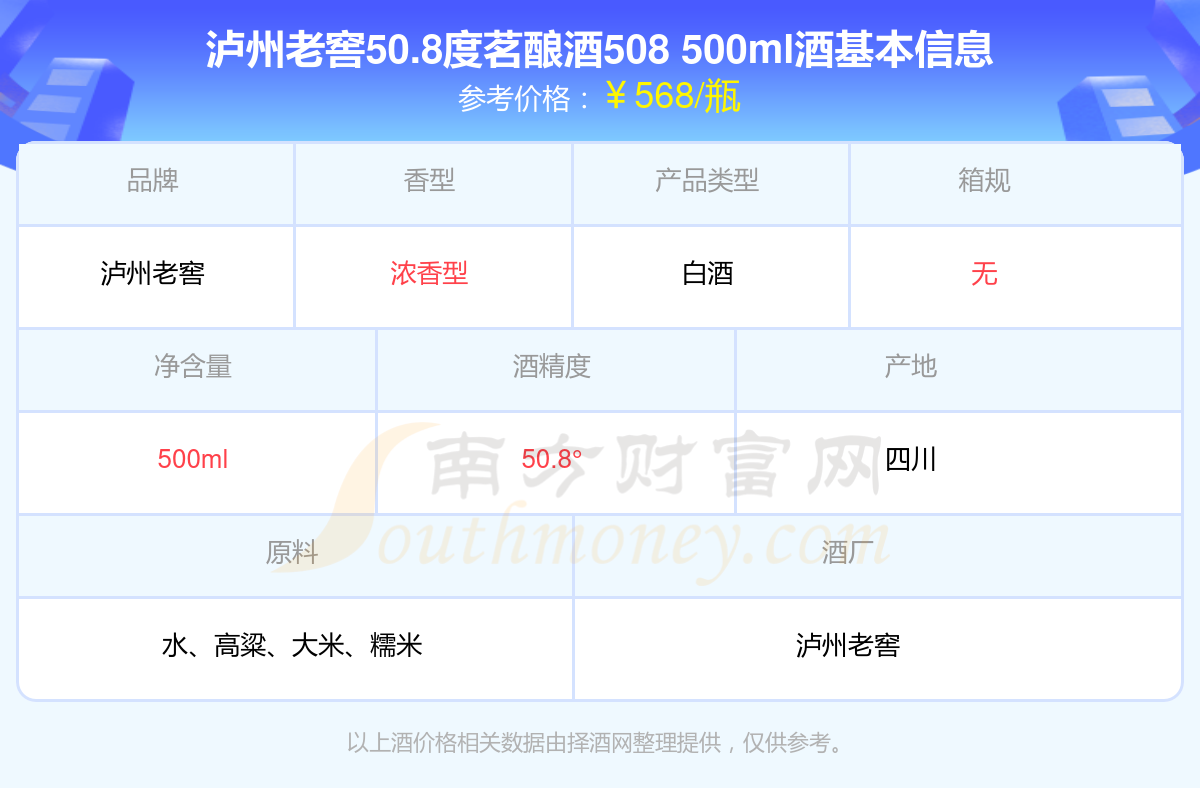 瀘州老窖50.8度茗釀酒508 500ml基本信息
