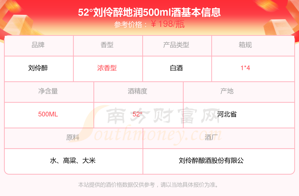 52°劉伶醉地潤500ml基本信息