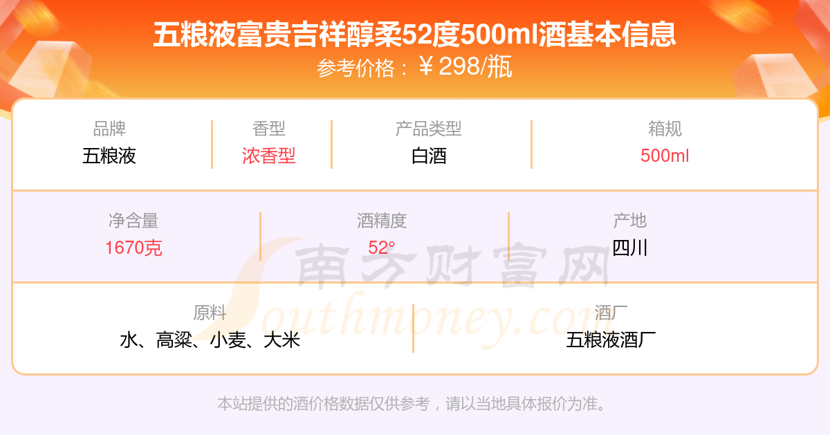 五糧液富貴吉祥醇柔52度500ml基本信息