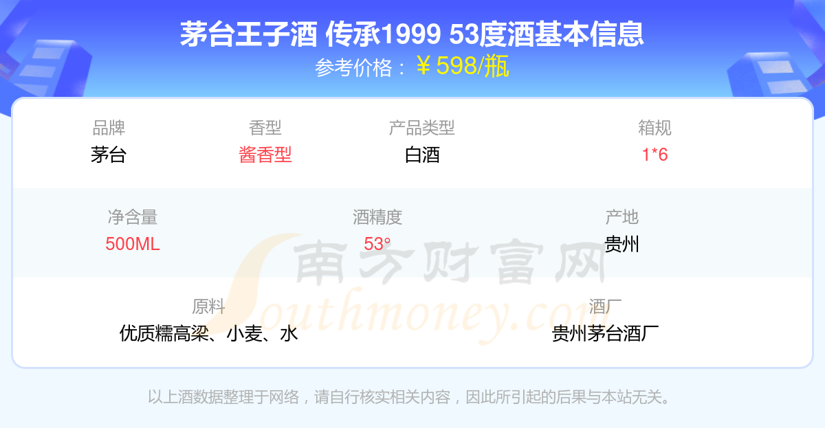 茅臺王子酒 傳承1999 53度基本信息