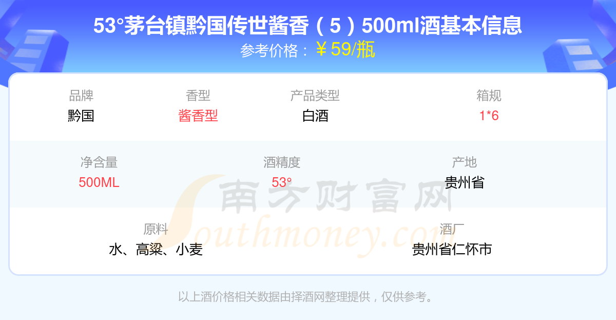 53°茅臺鎮(zhèn)黔國傳世醬香(5)500ml基本信息