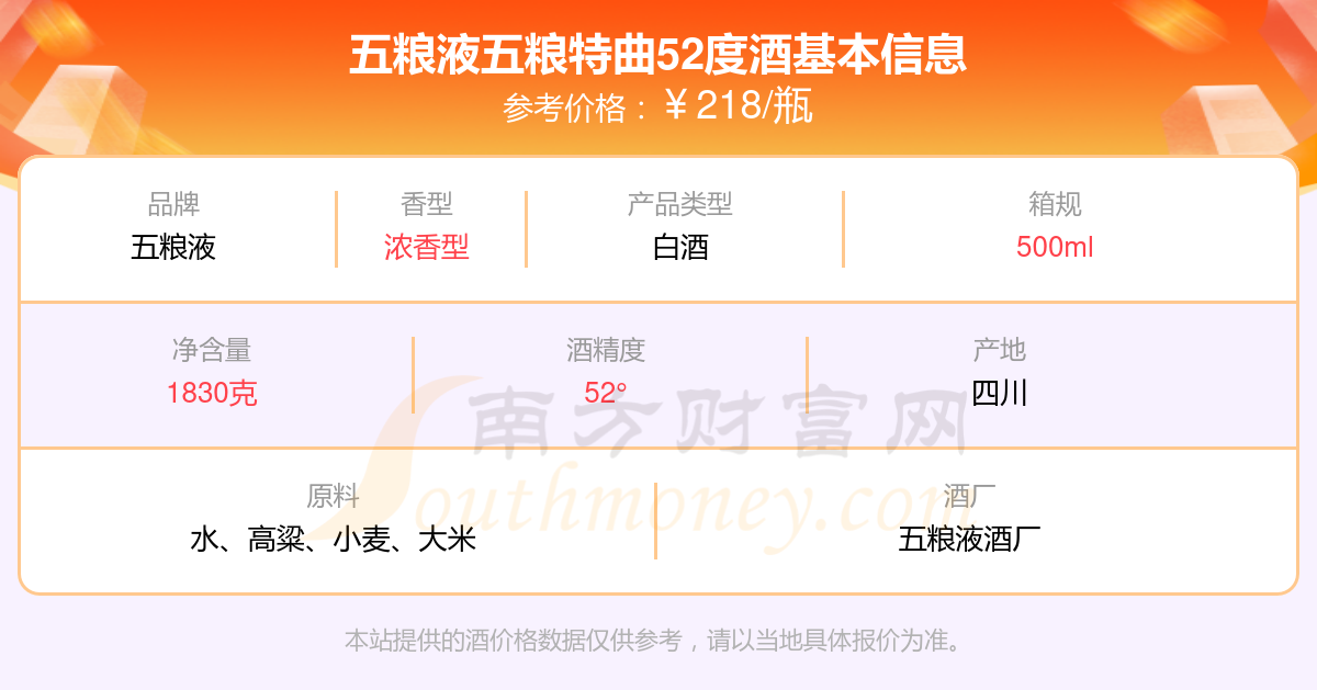 五糧液五糧特曲52度基本信息