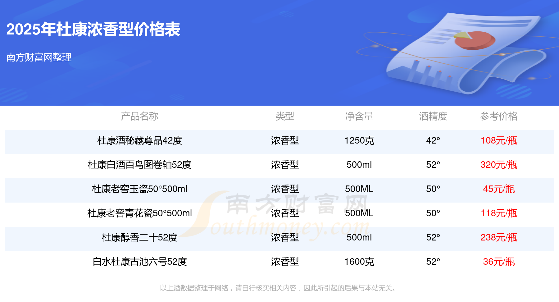 2025年杜康濃香型酒杜康白酒百鳥圖卷軸52度、杜康醇香二十52度、杜康老窖青花瓷50°500ml、杜康酒秘藏尊品42度等最新價(jià)格如下:杜康白酒百鳥圖卷軸52度參考價(jià)320元/瓶、杜康醇香二十52度參考價(jià)238元/瓶、杜康老窖青花瓷50°500ml參考價(jià)118元/瓶、杜康酒秘藏尊品42度參考價(jià)108元/瓶。