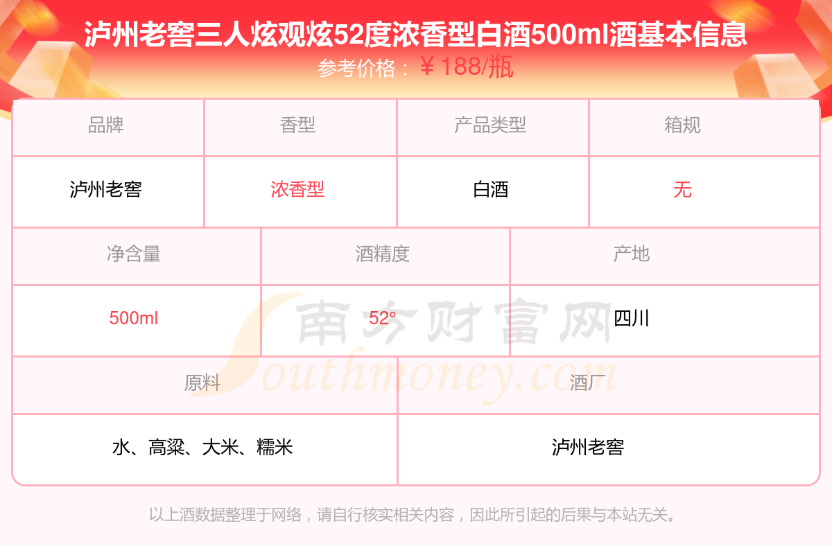 瀘州老窖三人炫觀炫52度濃香型白酒500ml基本信息