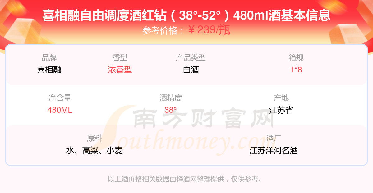 喜相融自由調(diào)度酒紅鉆(38°-52°)480ml基本信息