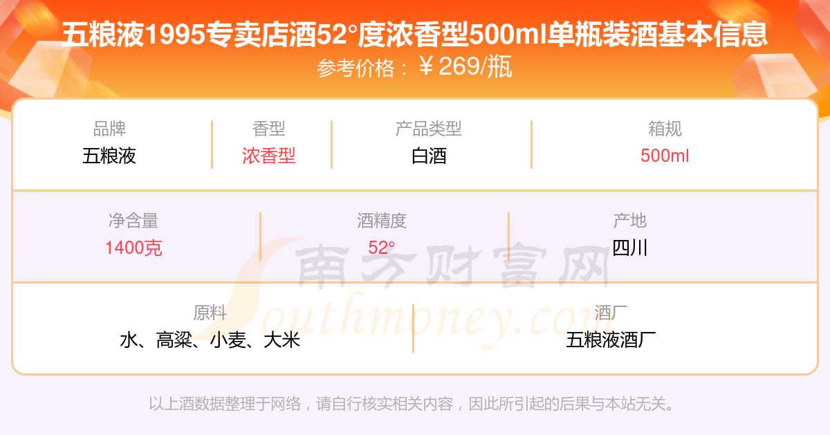 五糧液1995專賣店酒52°度濃香型500ml單瓶裝基本信息
