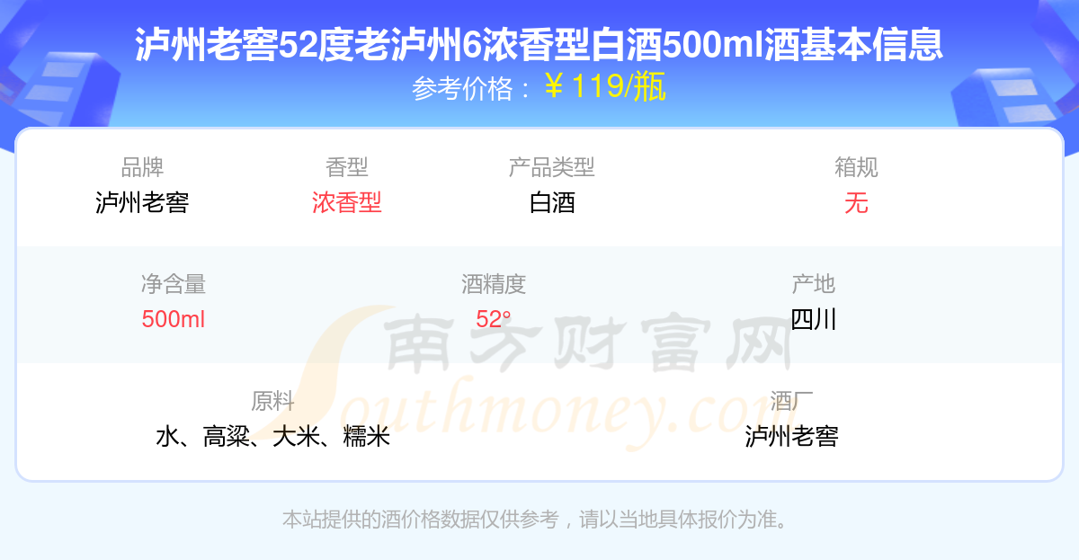 瀘州老窖52度老瀘州6濃香型白酒500ml基本信息