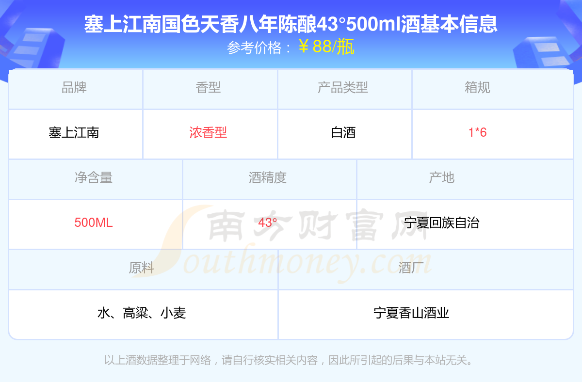 塞上江南國色天香八年陳釀43°500ml基本信息