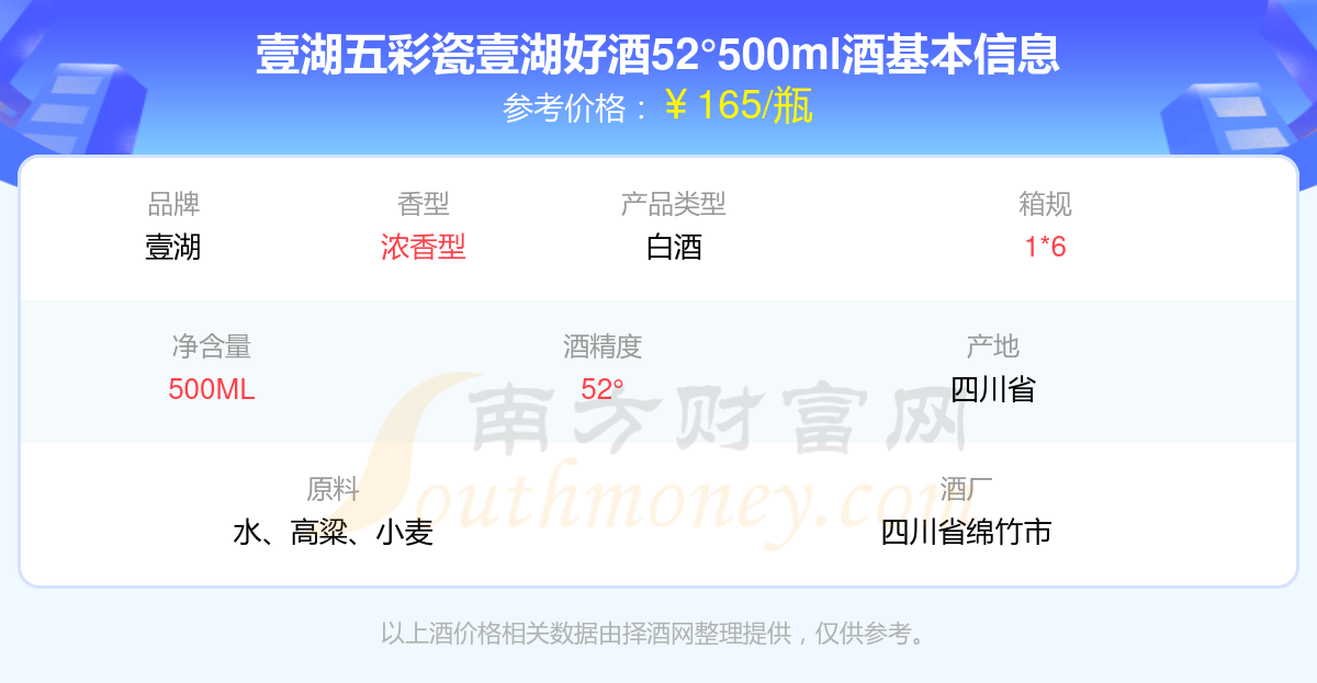 壹湖五彩瓷壹湖好酒52°500ml基本信息