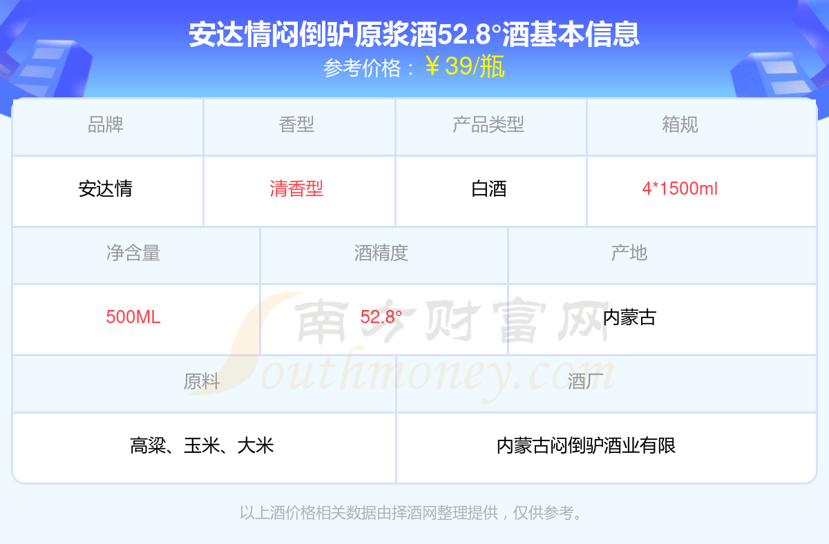 安達(dá)情悶倒驢原漿酒52.8°基本信息
