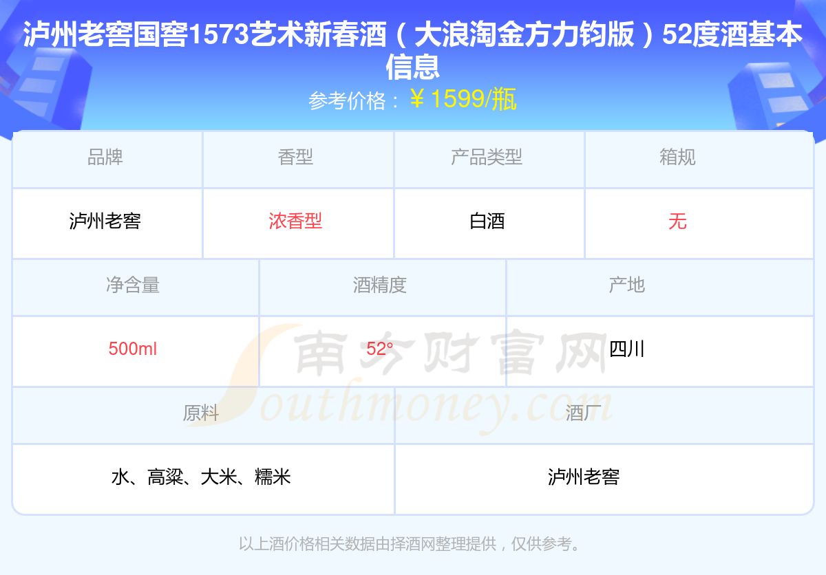 瀘州老窖國(guó)窖1573藝術(shù)新春酒(大浪淘金方力鈞版)52度基本信息