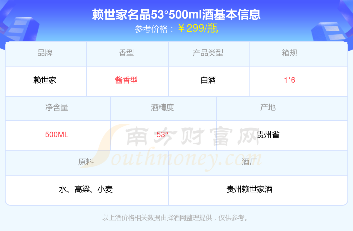賴世家名品53°500ml基本信息