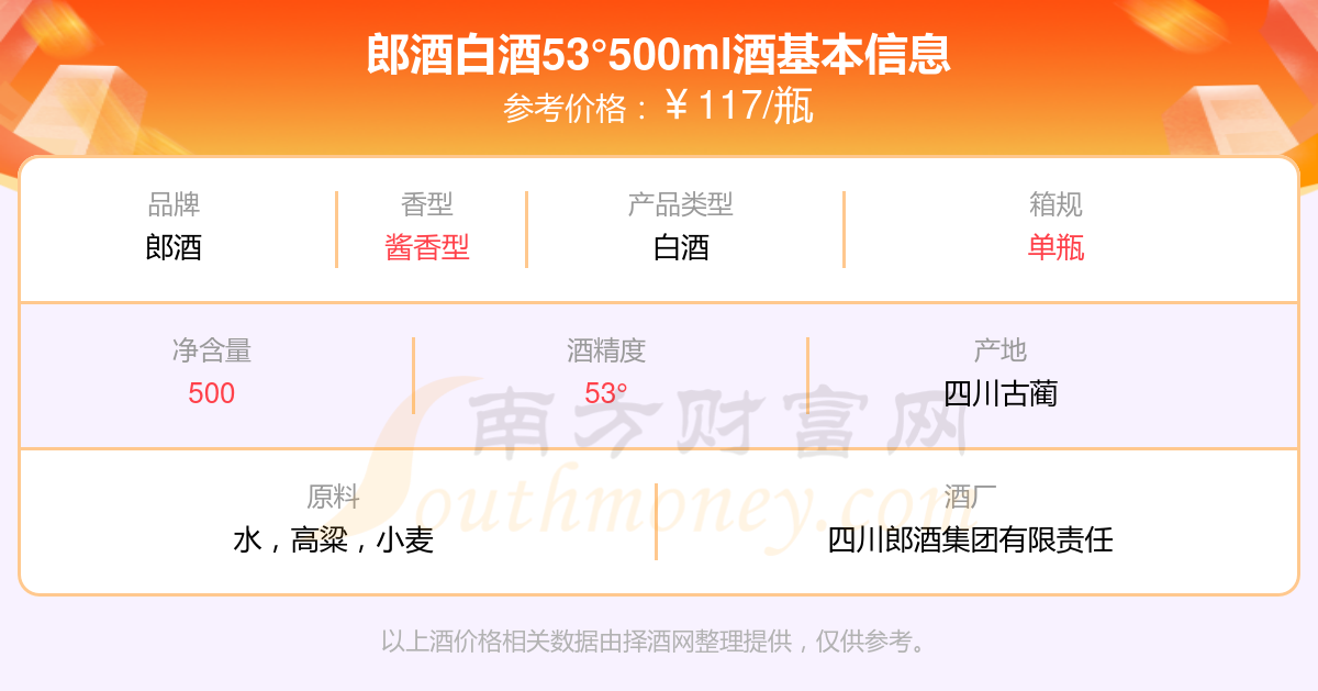 郎酒白酒53°500ml基本信息