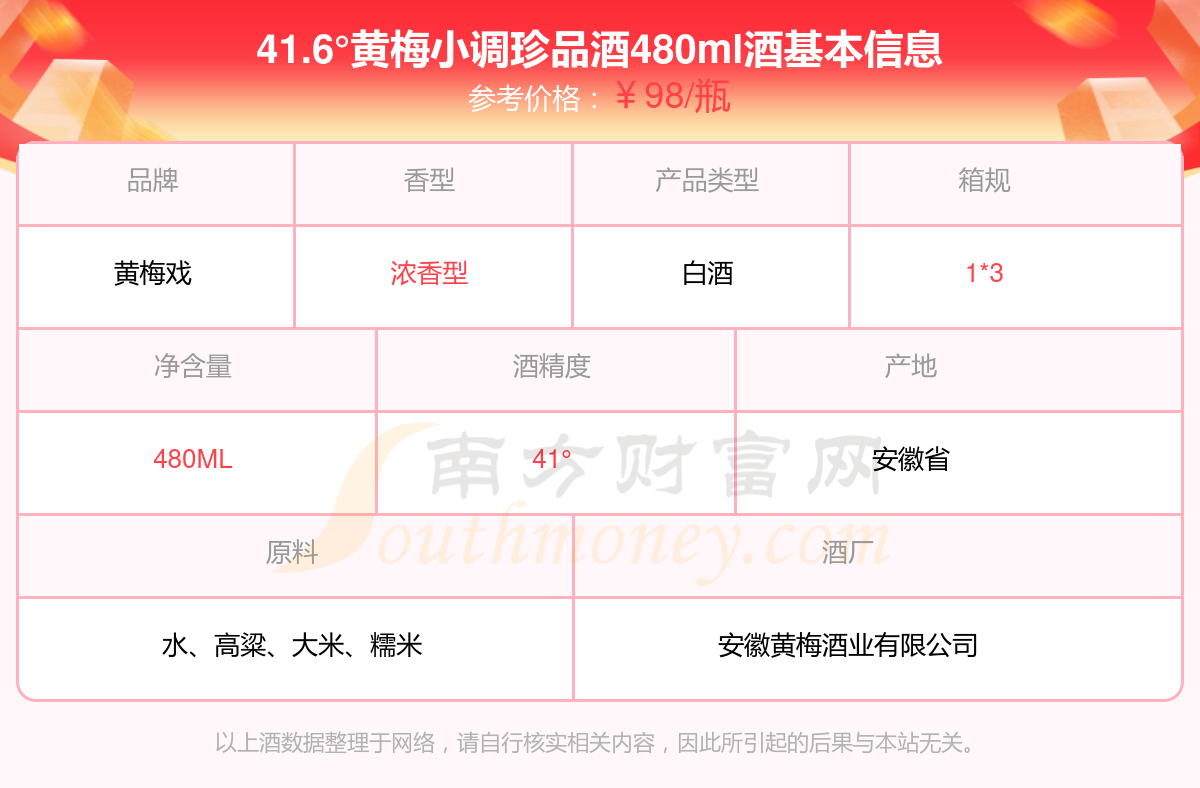 41.6°黃梅小調(diào)珍品酒480ml基本信息