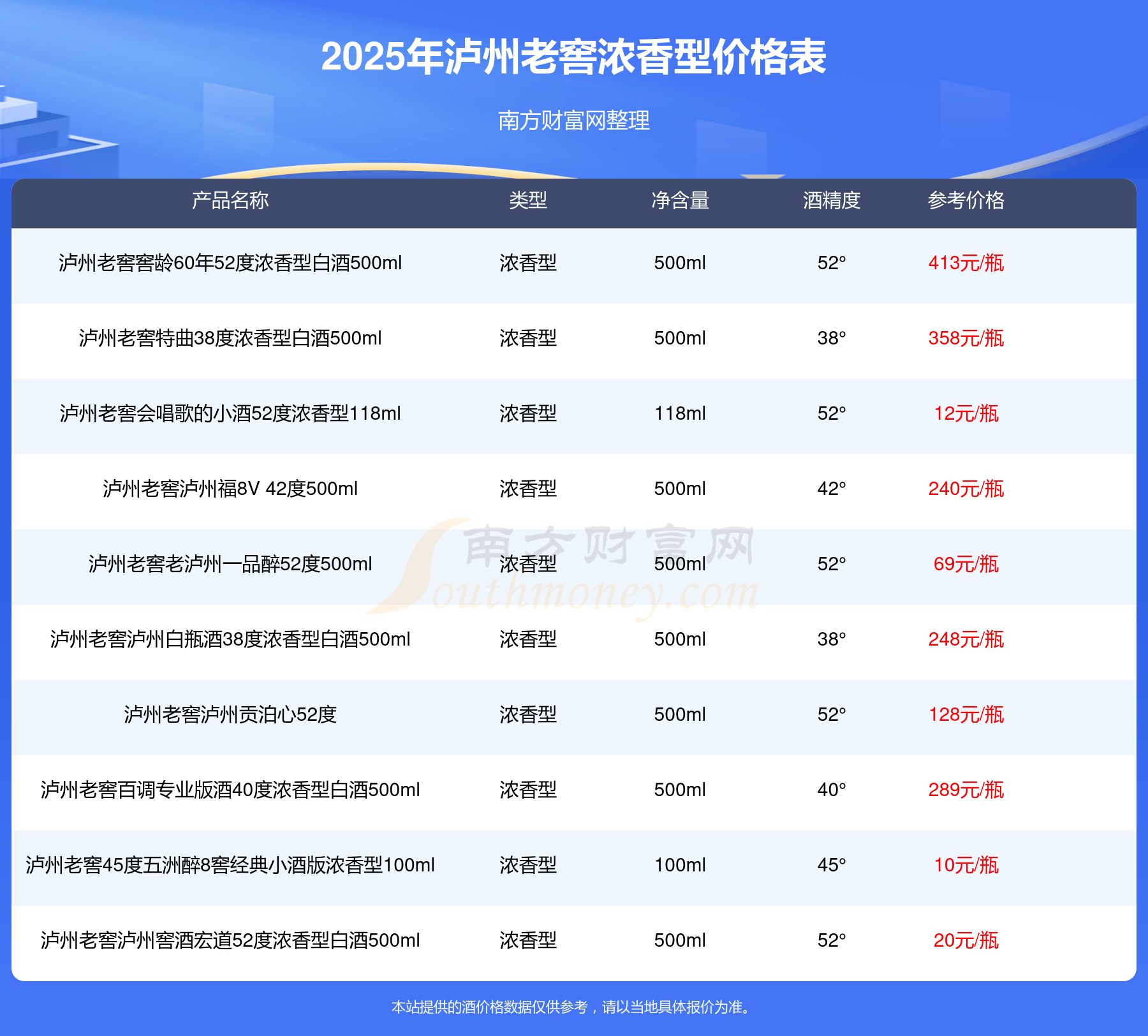 2025年瀘州老窖濃香型酒瀘州老窖國(guó)窖1573春釀鼠兆豐年E 55度、瀘州老窖國(guó)窖1573生命中的那壇酒55度014、瀘州老窖國(guó)窖1573春釀鼠兆豐年A 55度、瀘州老窖國(guó)窖1573生命中的那壇酒55度013濃香型白酒1000ml、瀘州老窖國(guó)窖1573生命中的那壇酒55度009 1000ml、瀘州老窖國(guó)窖1573中國(guó)品味52度濃香型白酒500ml、瀘州老窖國(guó)窖1573許燎源概念作品58度濃香型白酒1000ml等最新價(jià)格如下:瀘州老窖國(guó)窖1573春釀鼠兆豐年E 55度參考價(jià)17999元/瓶、瀘州老窖國(guó)窖1573生命中的那壇酒55度014參考價(jià)9999元/瓶、瀘州老窖國(guó)窖1573春釀鼠兆豐年A 55度參考價(jià)5088元/瓶、瀘州老窖國(guó)窖1573生命中的那壇酒55度013濃香型白酒1000ml參考價(jià)4988元/瓶、瀘州老窖國(guó)窖1573生命中的那壇酒55度009 1000ml參考價(jià)4288元/瓶、瀘州老窖國(guó)窖1573中國(guó)品味52度濃香型白酒500ml參考價(jià)2888元/瓶、瀘州老窖國(guó)窖1573許燎源概念作品58度濃香型白酒1000ml參考價(jià)2680元/瓶。