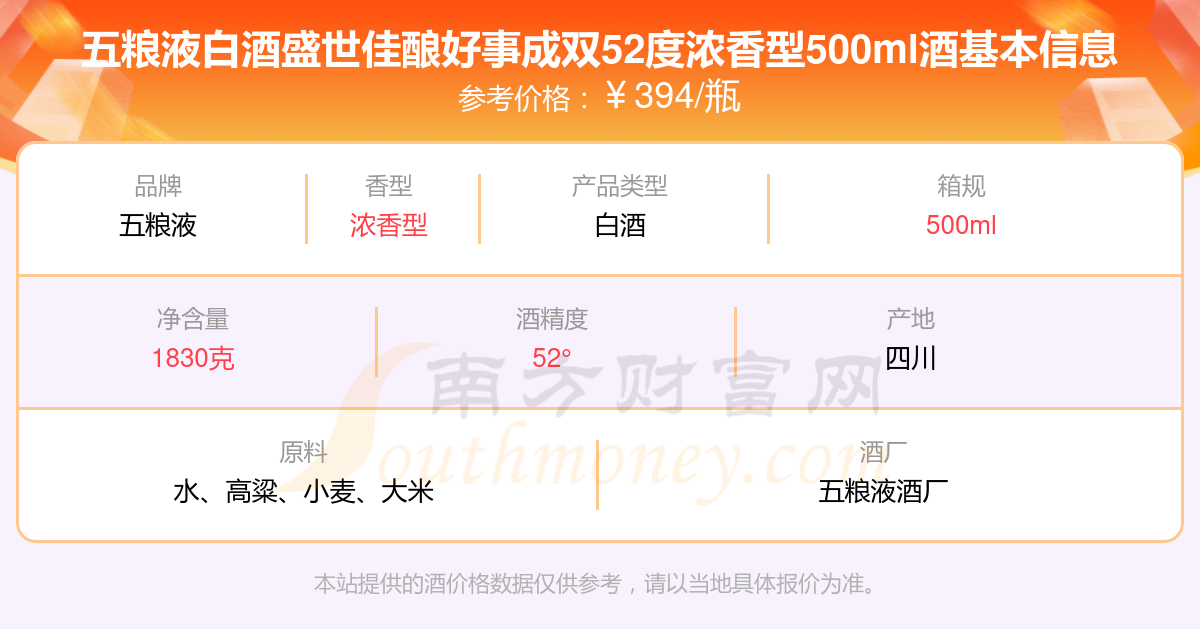五糧液白酒盛世佳釀好事成雙52度濃香型500ml基本信息