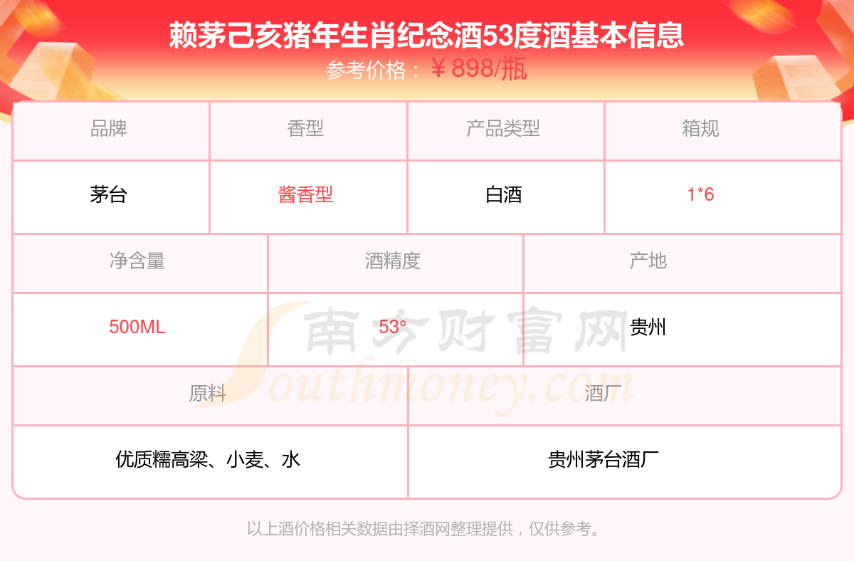賴茅己亥豬年生肖紀念酒53度基本信息