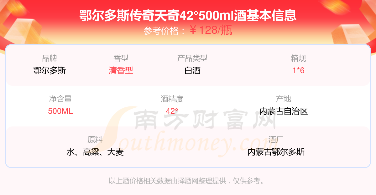 鄂爾多斯傳奇天奇42°500ml基本信息