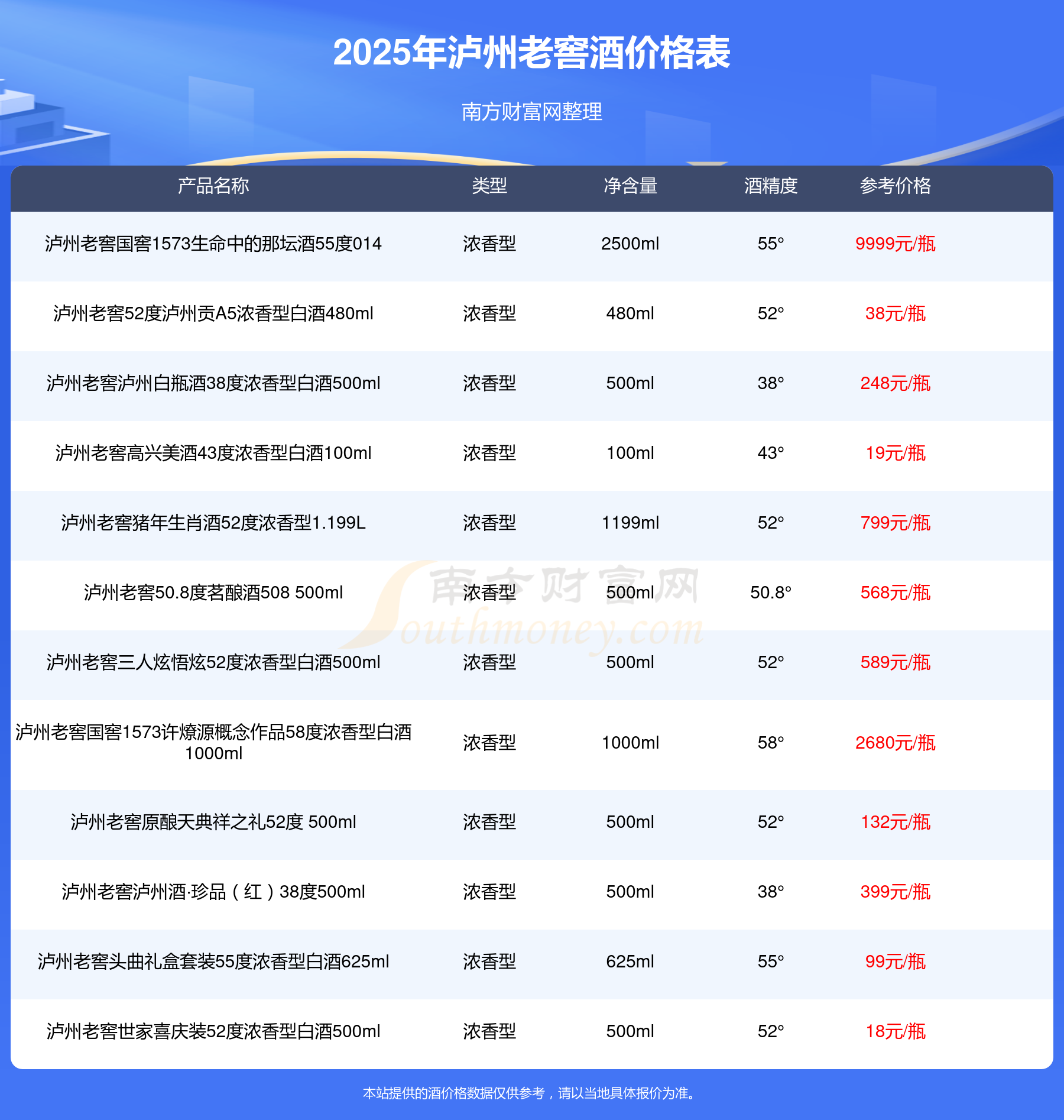 2025年瀘州老窖酒瀘州老窖國窖1573春釀鼠兆豐年E 55度、瀘州老窖國窖1573生命中的那壇酒55度014、瀘州老窖國窖1573春釀鼠兆豐年A 55度等最新價格如下: