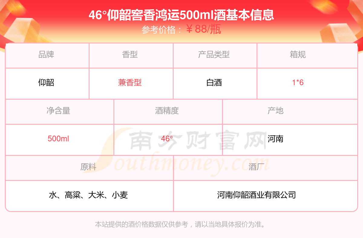 46°仰韶窖香鴻運(yùn)500ml基本信息