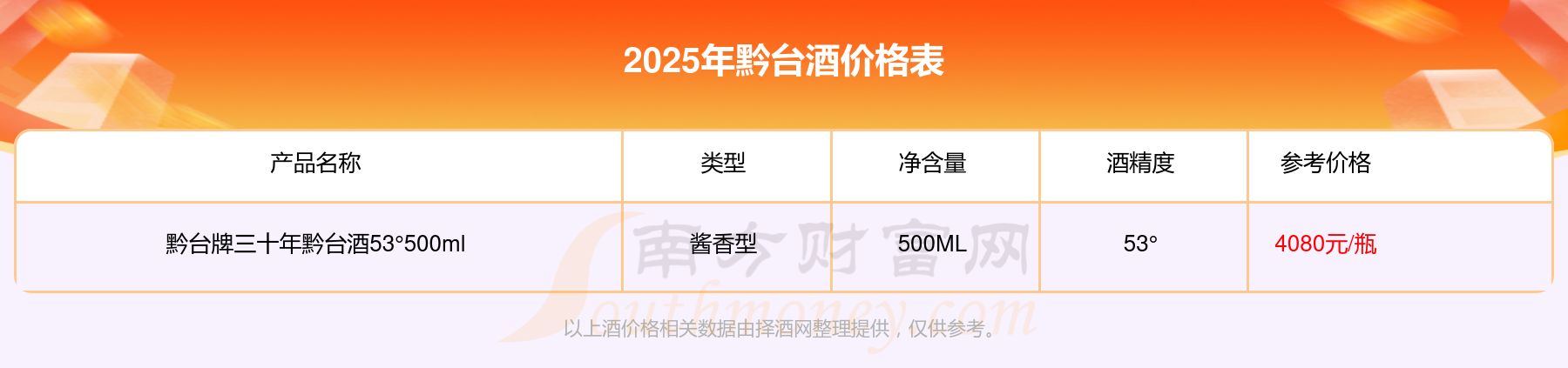 黔臺(tái)牌十年黔臺(tái)酒53°500ml基本信息