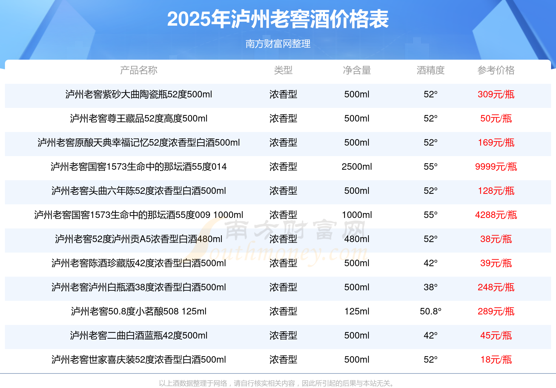 2025年,瀘州老窖國(guó)窖1573春釀鼠兆豐年E 55度、瀘州老窖國(guó)窖1573生命中的那壇酒55度014、瀘州老窖國(guó)窖1573春釀鼠兆豐年A 55度、瀘州老窖國(guó)窖1573生命中的那壇酒55度013濃香型白酒1000ml、瀘州老窖國(guó)窖1573生命中的那壇酒55度009 1000ml等瀘州老窖酒價(jià)格如下:
