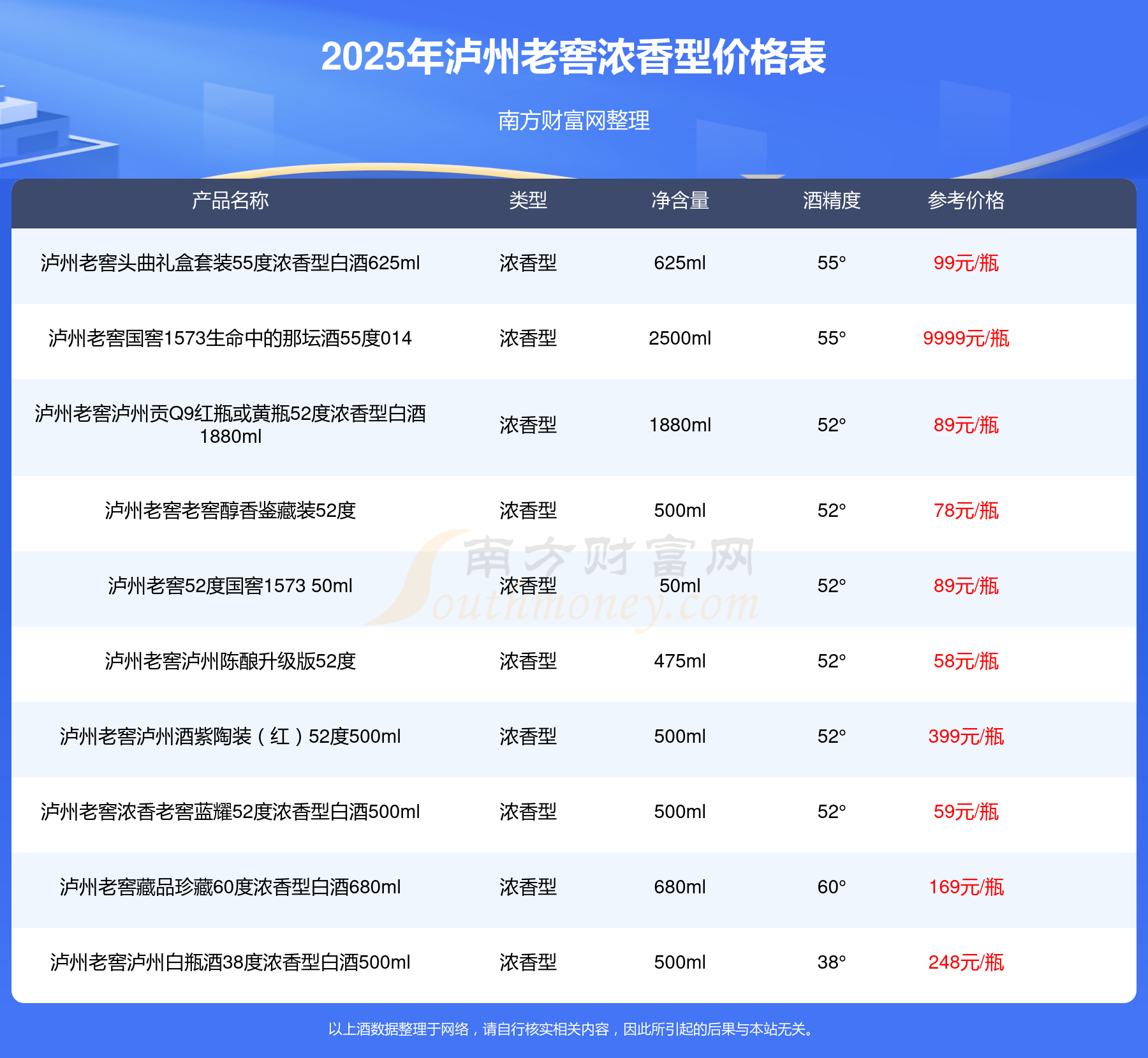 2025瀘州老窖濃香型酒最新價(jià)格: