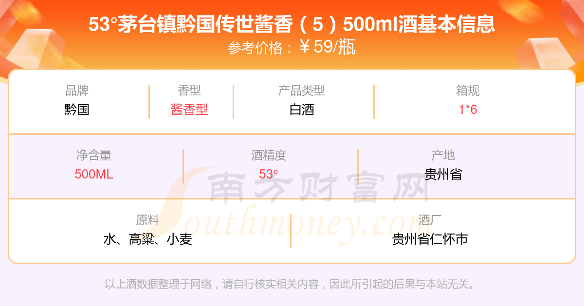 53°茅臺鎮(zhèn)黔國傳世醬香(5)500ml基本信息