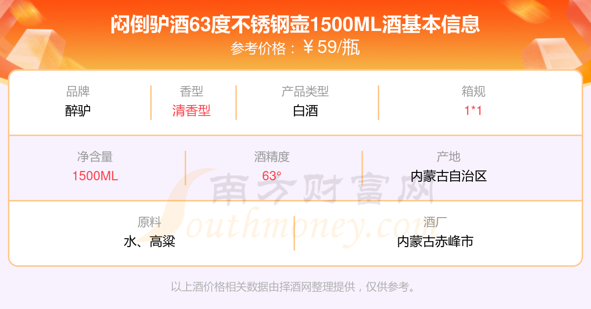 悶倒驢酒63度不銹鋼壺1500ML基本信息