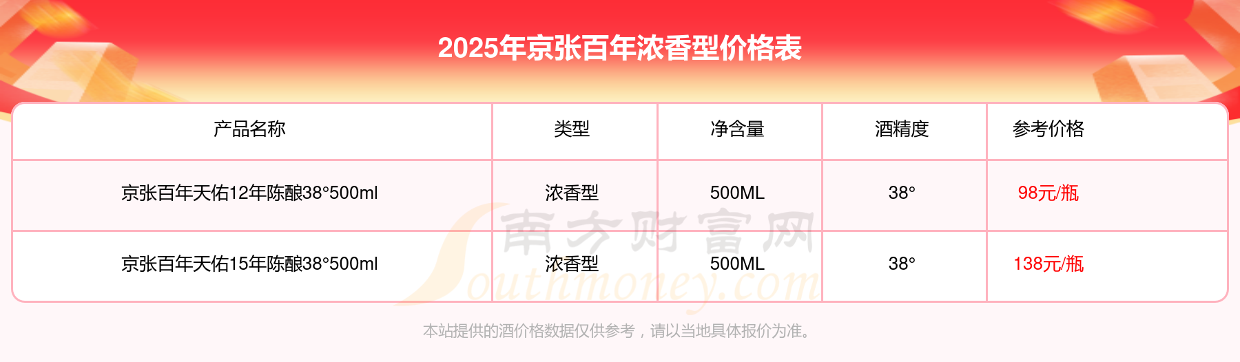 京張百年天佑15年陳釀38°500ml參考價(jià)138元/瓶、京張百年天佑12年陳釀38°500ml參考價(jià)98元/瓶。
