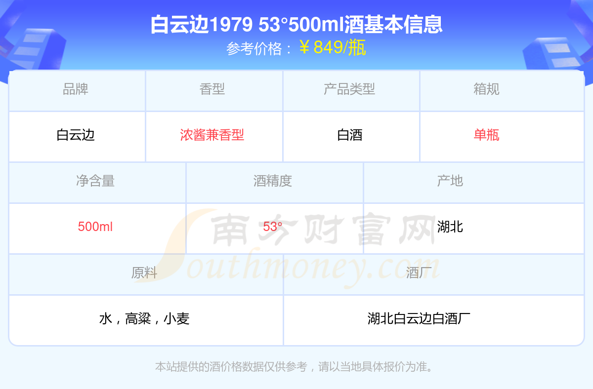 白云邊1979 53°500ml基本信息