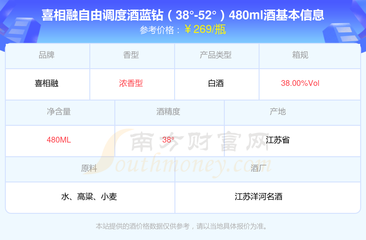 喜相融自由調度酒藍鉆(38°-52°)480ml基本信息