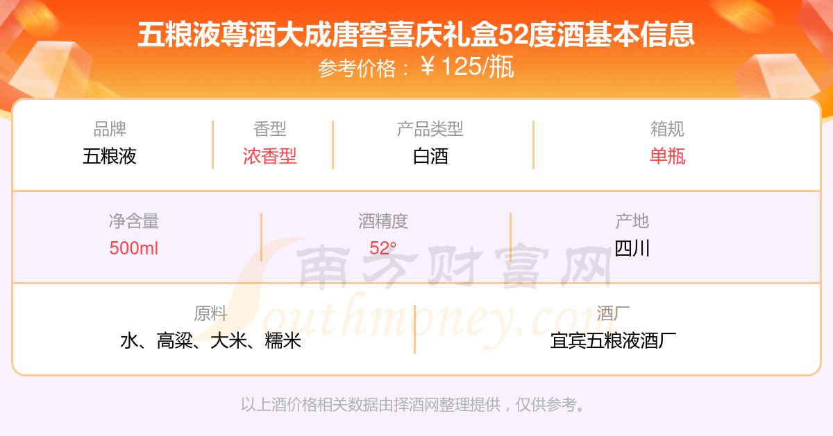 五糧液尊酒大成唐窖喜慶禮盒52度基本信息
