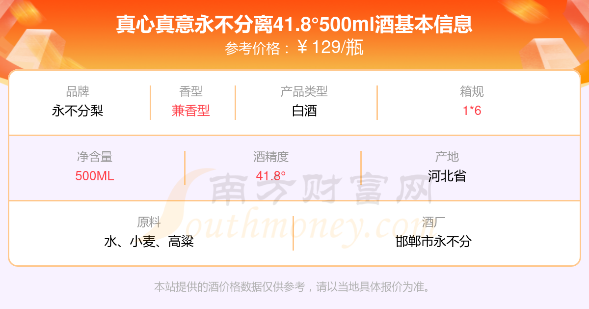 真心真意永不分離41.8°500ml基本信息