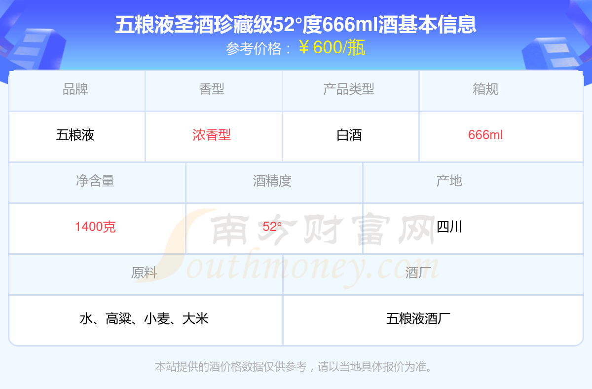五糧液圣酒珍藏級52°度666ml基本信息