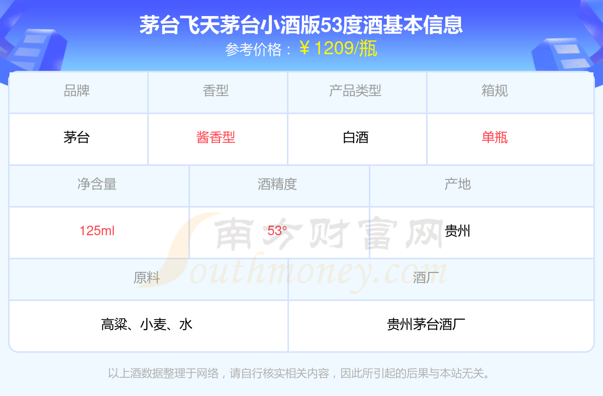 茅臺飛天茅臺小酒版53度基本信息