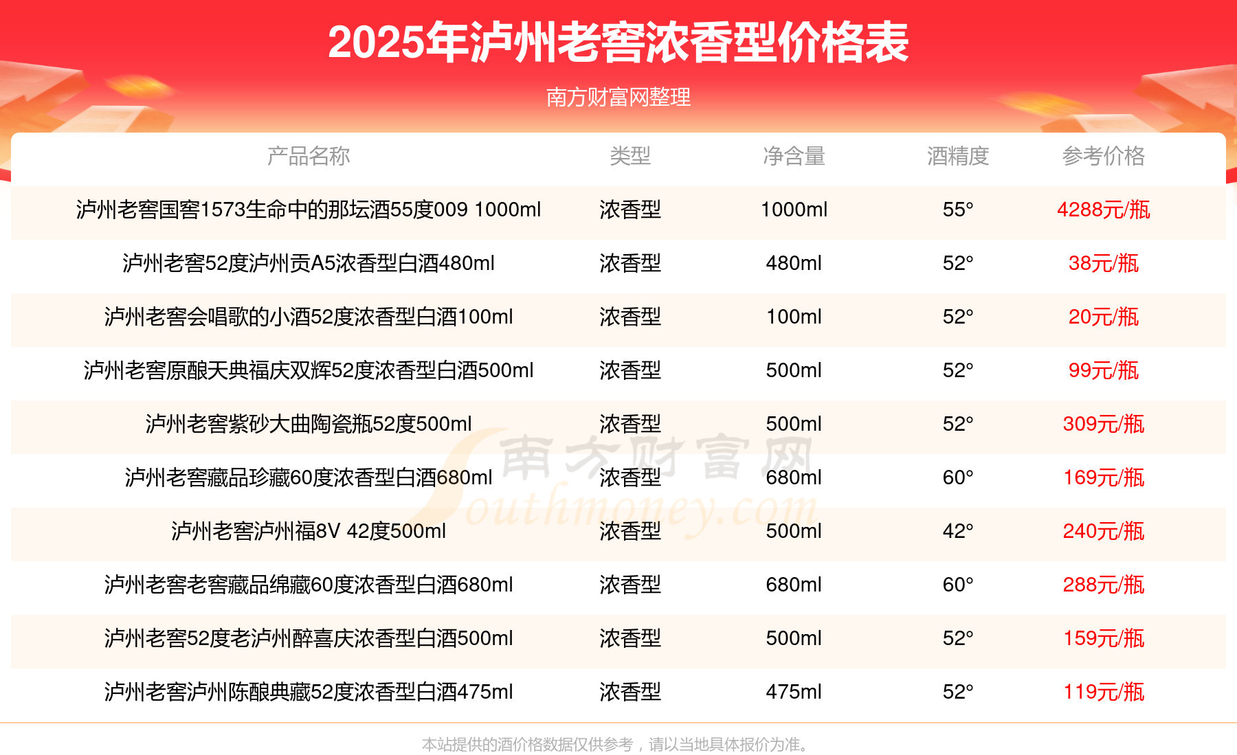 2025年瀘州老窖濃香型酒瀘州老窖國(guó)窖1573春釀鼠兆豐年E 55度、瀘州老窖國(guó)窖1573生命中的那壇酒55度014、瀘州老窖國(guó)窖1573春釀鼠兆豐年A 55度、瀘州老窖國(guó)窖1573生命中的那壇酒55度013濃香型白酒1000ml、瀘州老窖國(guó)窖1573生命中的那壇酒55度009 1000ml、瀘州老窖國(guó)窖1573中國(guó)品味52度濃香型白酒500ml等最新價(jià)格如下: