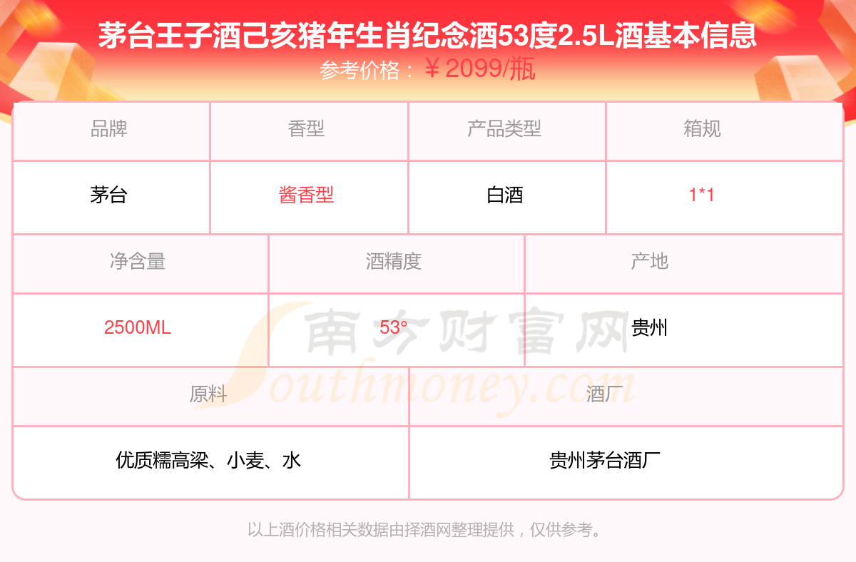 茅臺王子酒己亥豬年生肖紀(jì)念酒53度2.5L基本信息