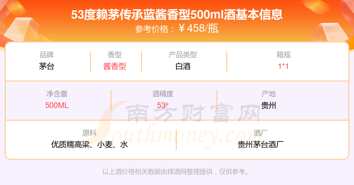 53度賴茅傳承藍醬香型500ml基本信息