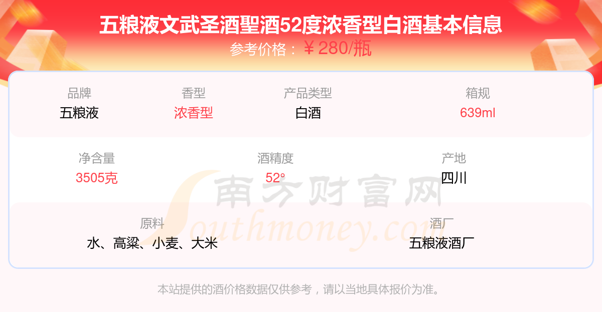 五糧液文武圣酒聖酒52度濃香型白酒基本信息