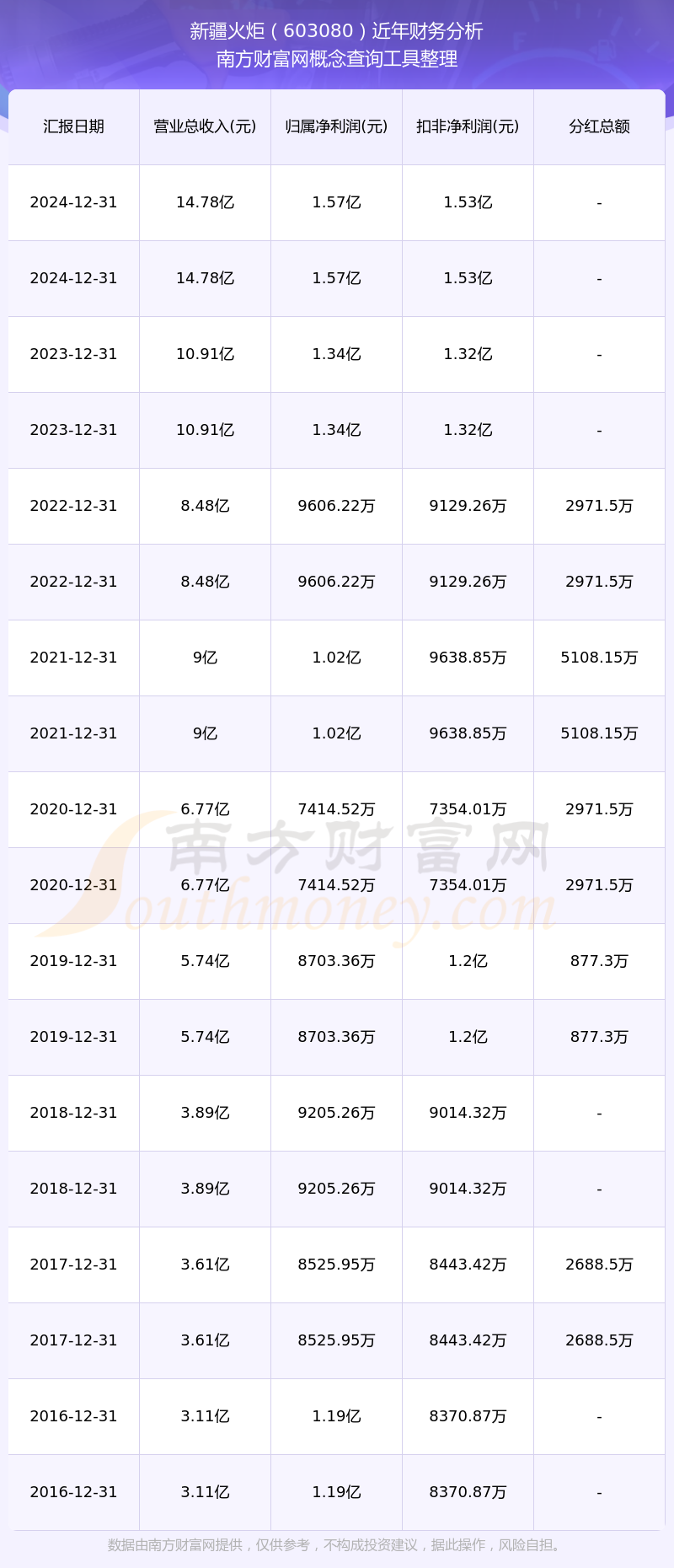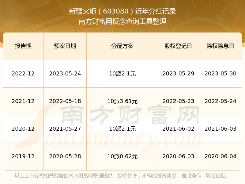 近年新疆火炬分紅派息情況如下表所示: