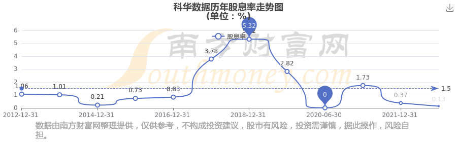 近年科華數(shù)據(jù)年度股息率走勢(shì)如下圖: