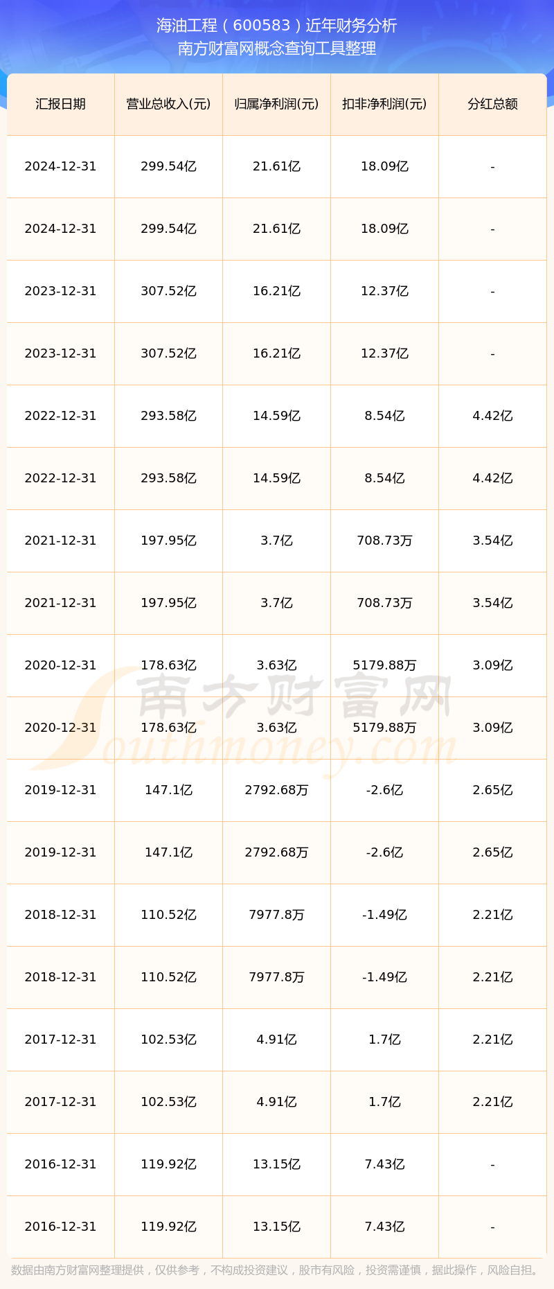 海油工程公司2024年實(shí)現(xiàn)營(yíng)收299.54億元,凈利潤(rùn)21.61億元,毛利率12.28%。