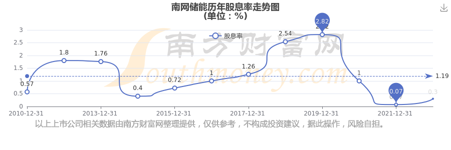 近年南網(wǎng)儲能年度股息率走勢如下圖: