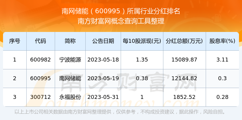 二、南網(wǎng)儲能600995行業(yè)分紅排名
