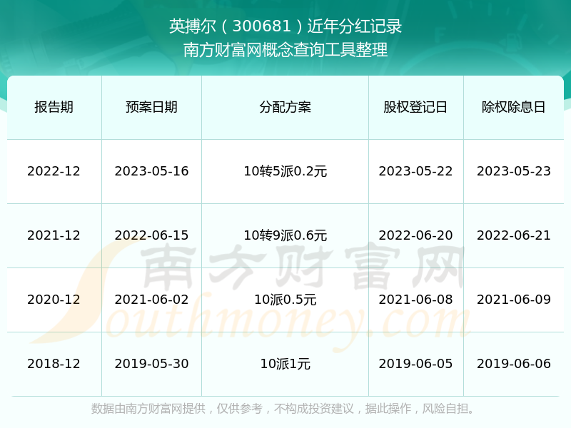 英搏爾最新一次公布的分紅方案:10轉(zhuǎn)5派0.2元。