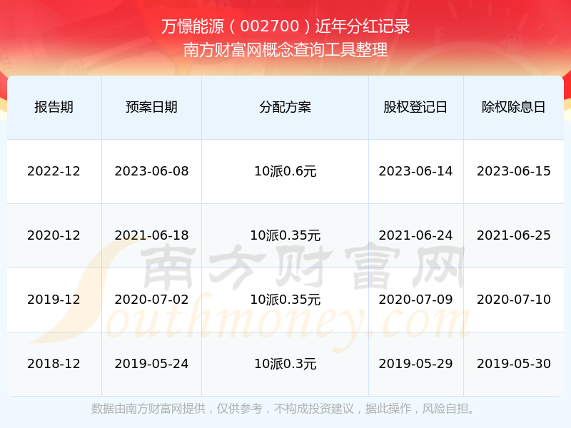 萬(wàn)憬能源最新一次公布的分紅方案:10派0.6元。