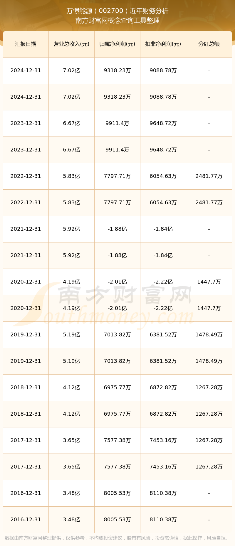 萬(wàn)憬能源2024年總營(yíng)收7.02億,同比增長(zhǎng)5.14%;凈利潤(rùn)9318.23萬(wàn),同比增長(zhǎng)-5.98%;銷售毛利率23.54%。