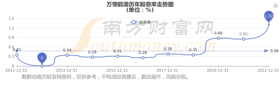 萬(wàn)憬能源歷年股息率走勢(shì)如下圖: